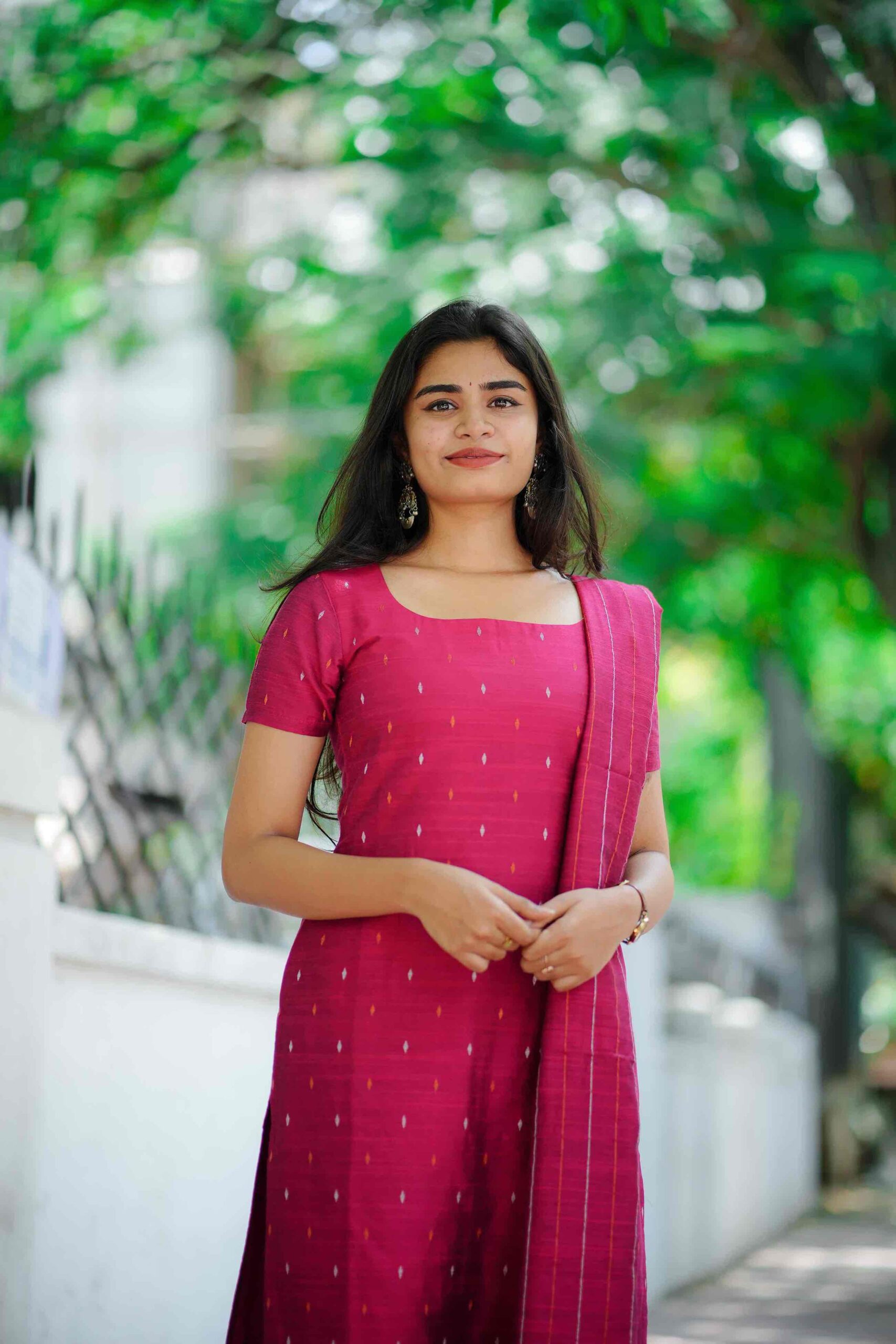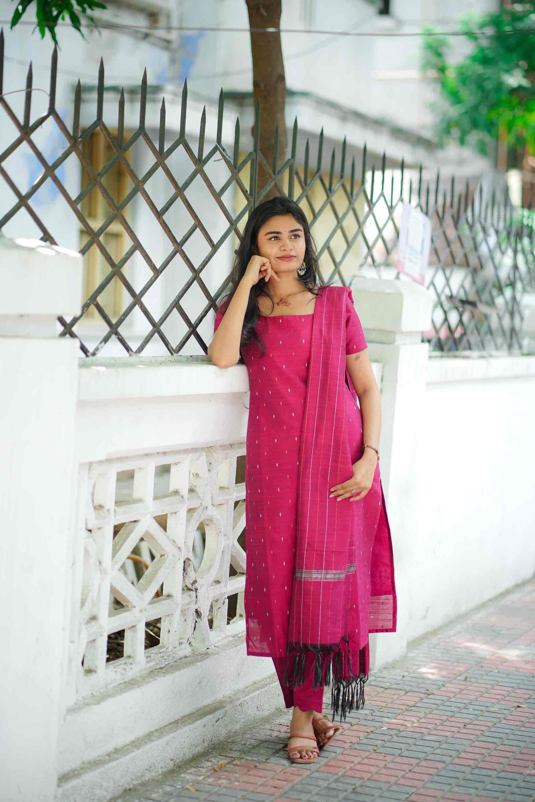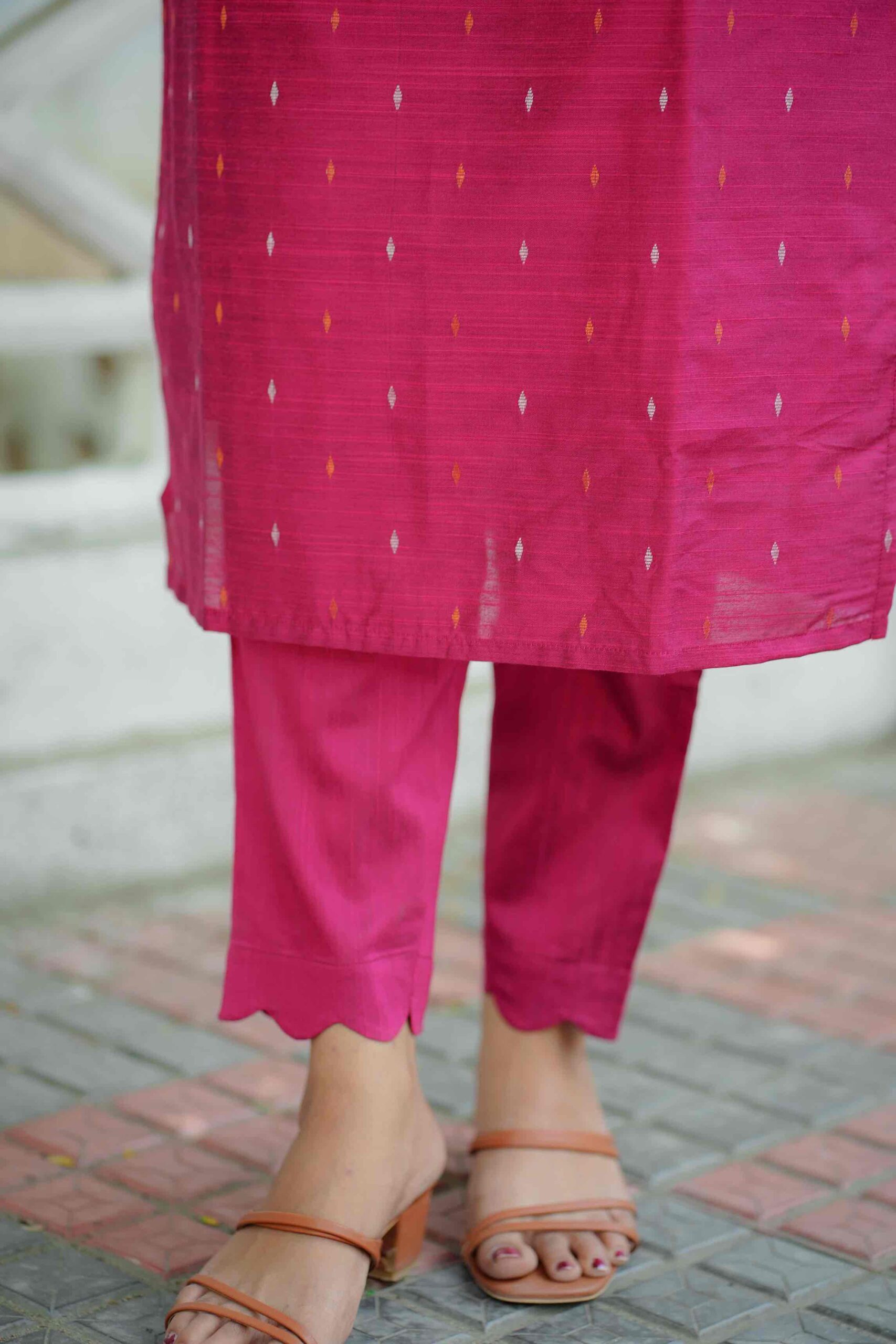 When comfort meets charm! This three-piece set comes with a lively kurta, smart pants styled with a scalloped finish, and a flowy dupatta with tassels that sway with every step. Simple, stylish, and perfect to brighten up any occasion effortlessly.