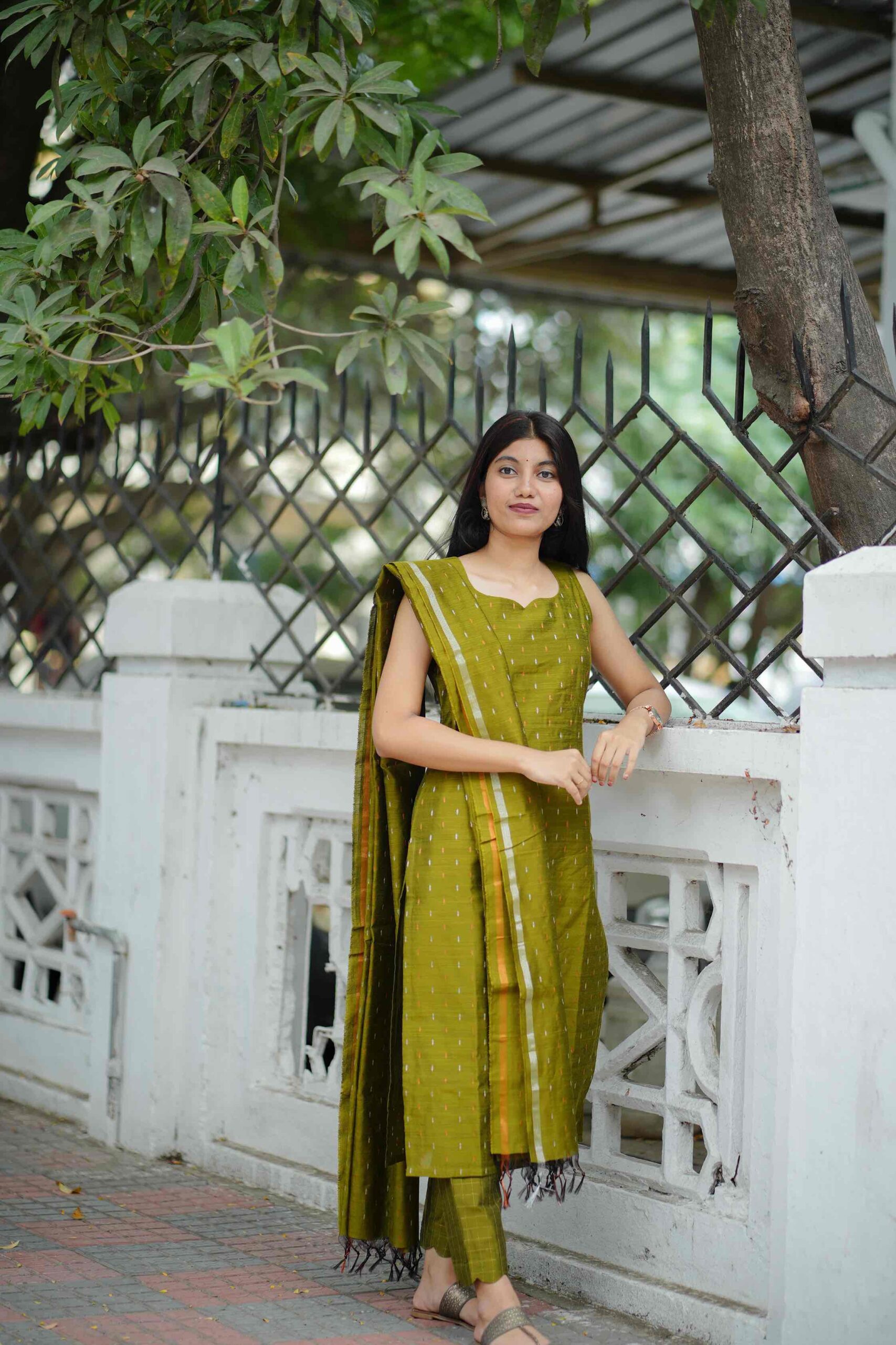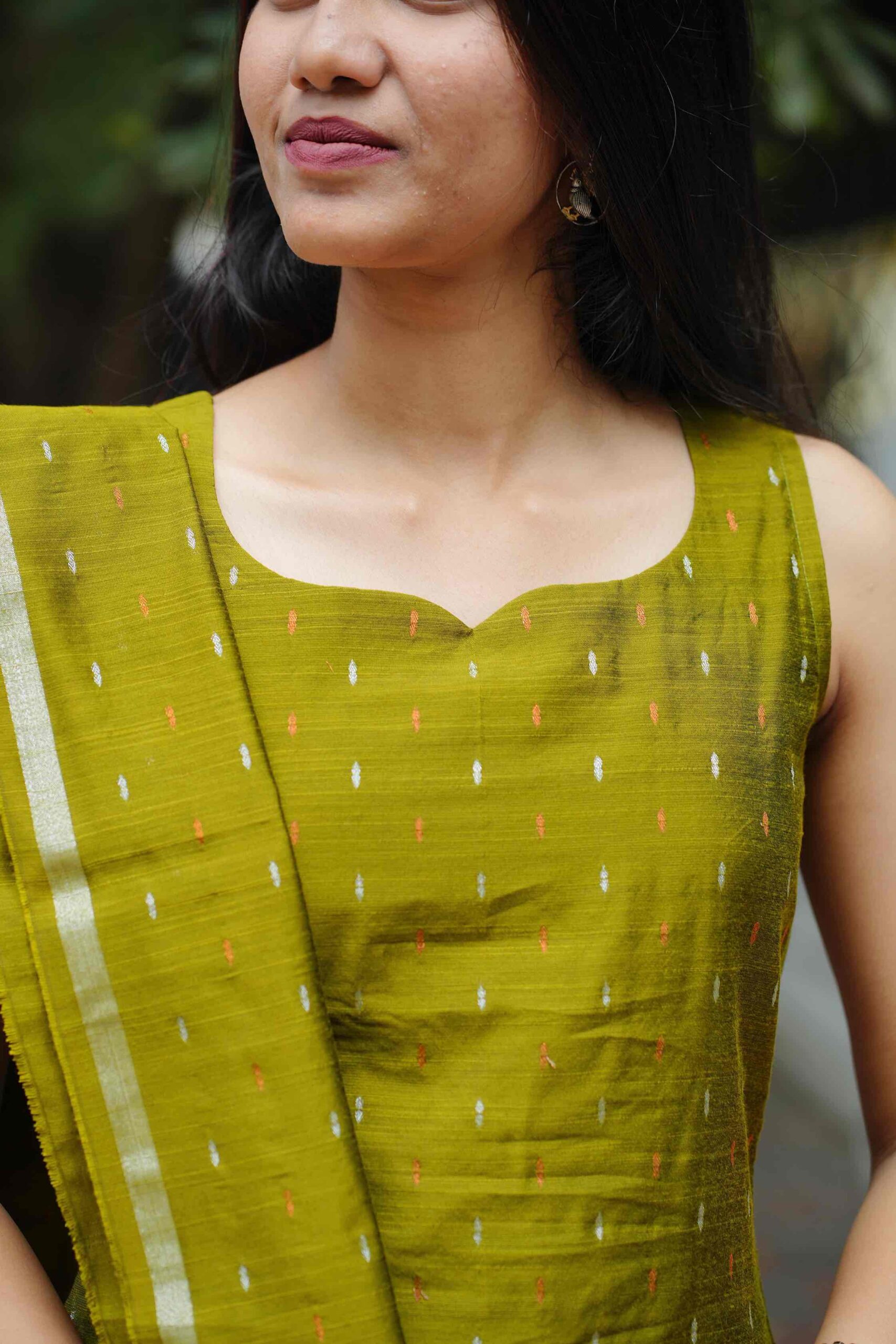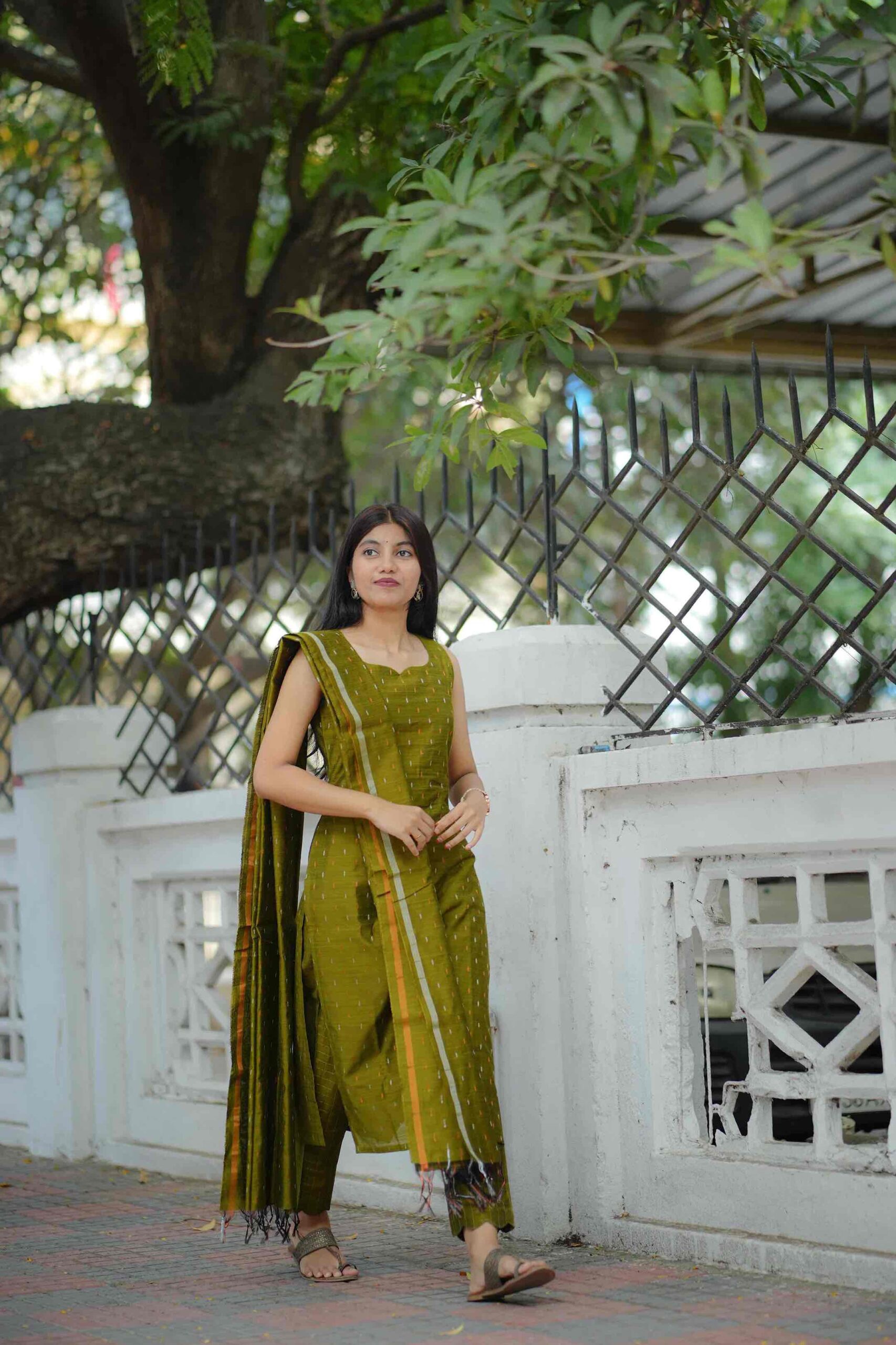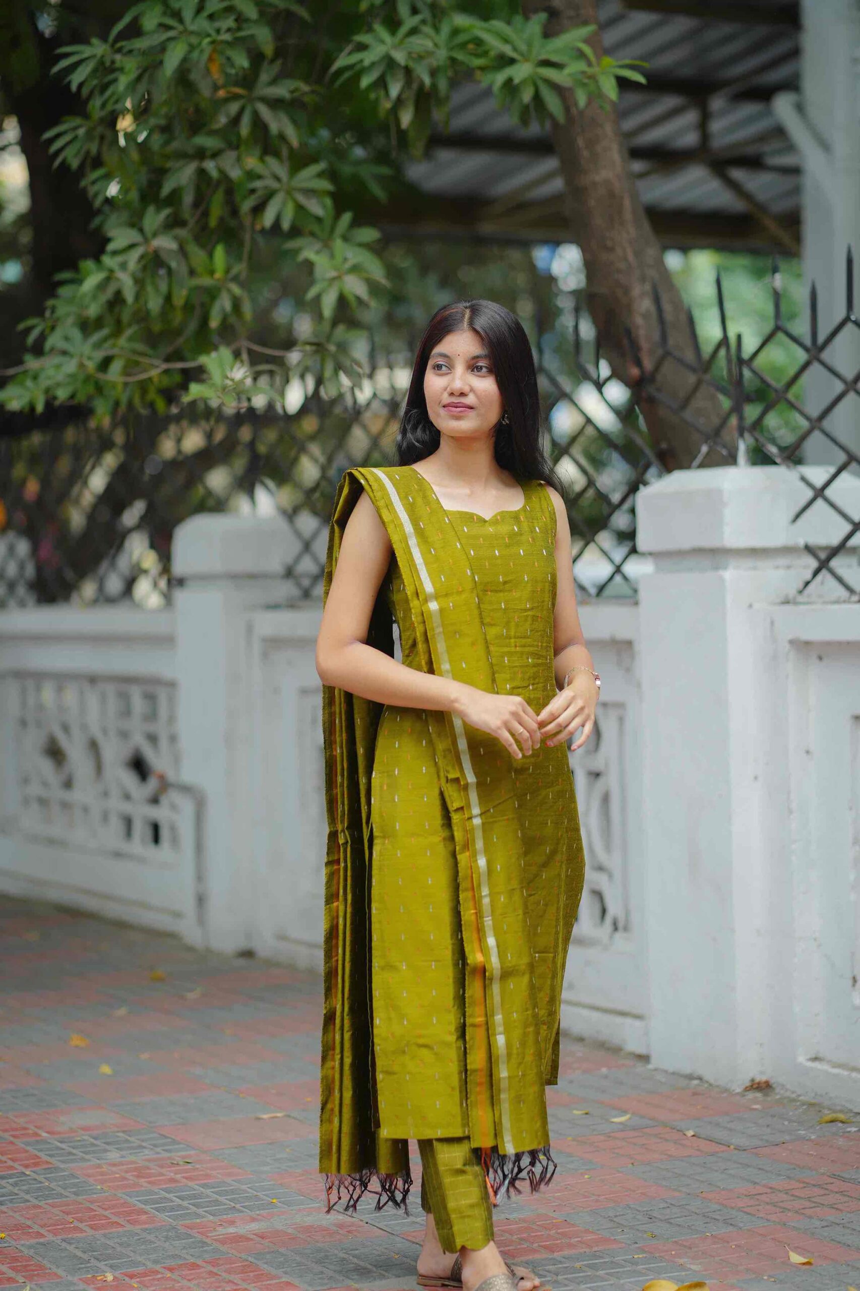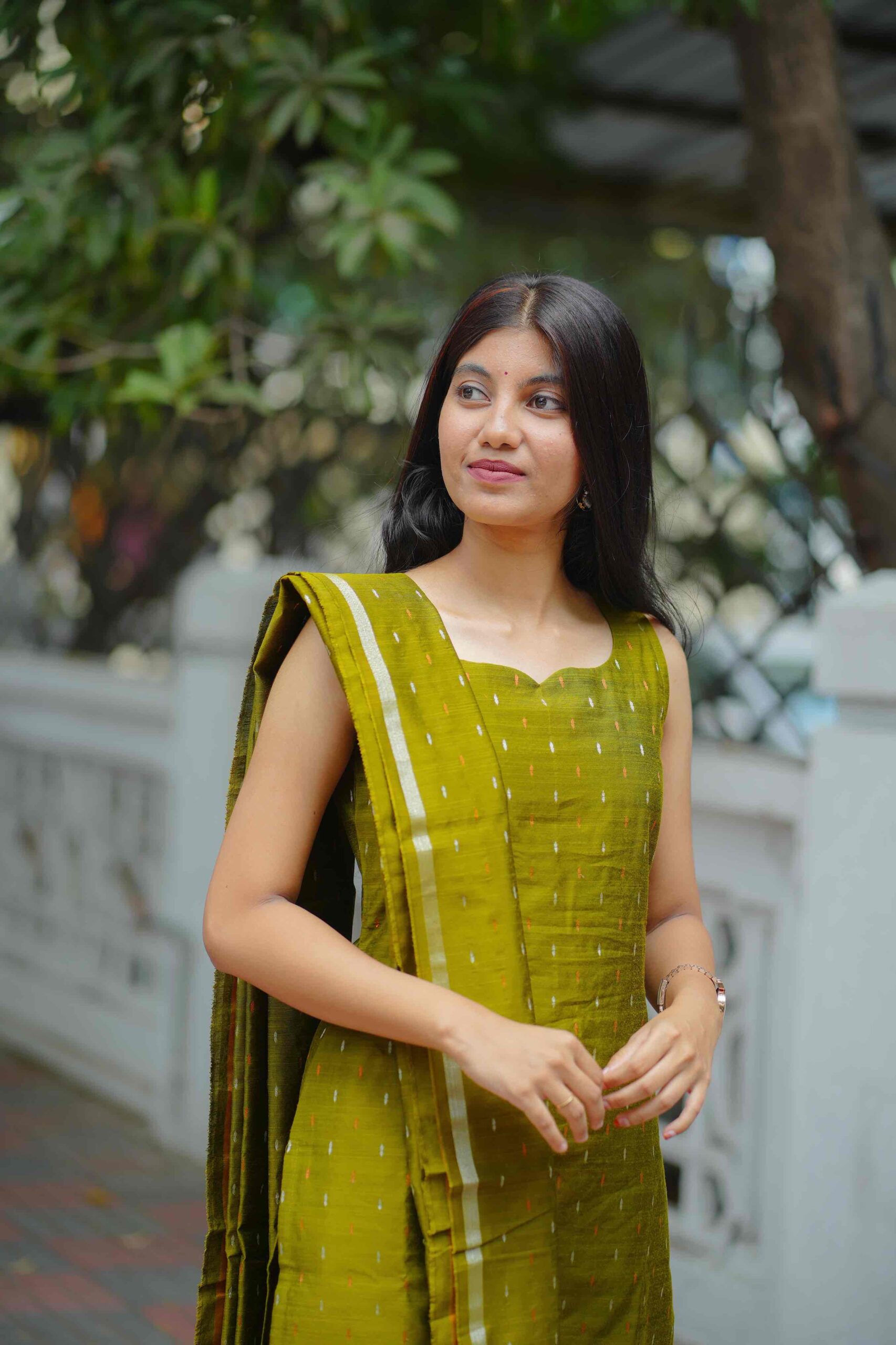 Who knew green could shine this bright? This bottle-green three-piece set comes with a sleek sleeveless kurta, comfy matching pants, and a flowy dupatta to tie it all together. Love sleeves? No worries — we’ve tucked in an extra sleeve piece you can attach anytime for a brand-new look.